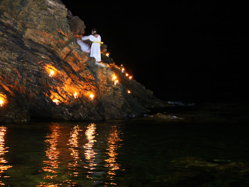 The procession then moves to the Innamorata beach, where Maria, from the rocks, jumps into the water in search of Lorenzo. There, as legend has it, remains the shawl lost by Mary.