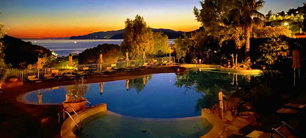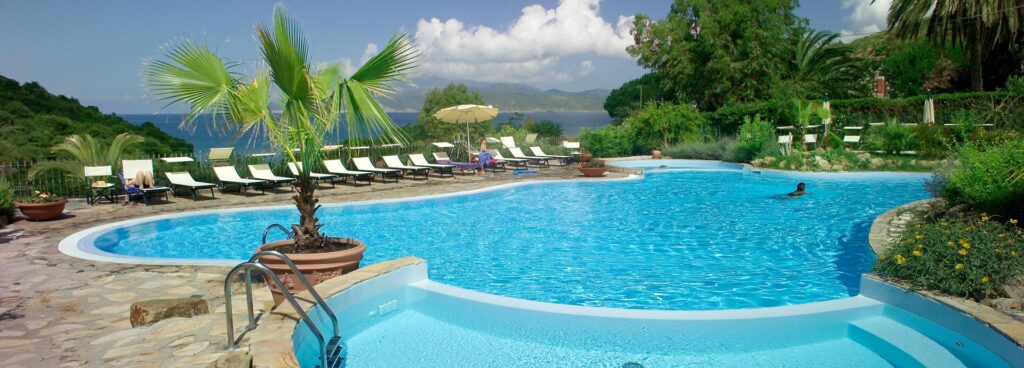 Our swimming pool is the ideal place to take a relaxing break comfortably lying on a sunbed, surrounded by the beautiful Mediterranean vegetation and with panoramic sea views.