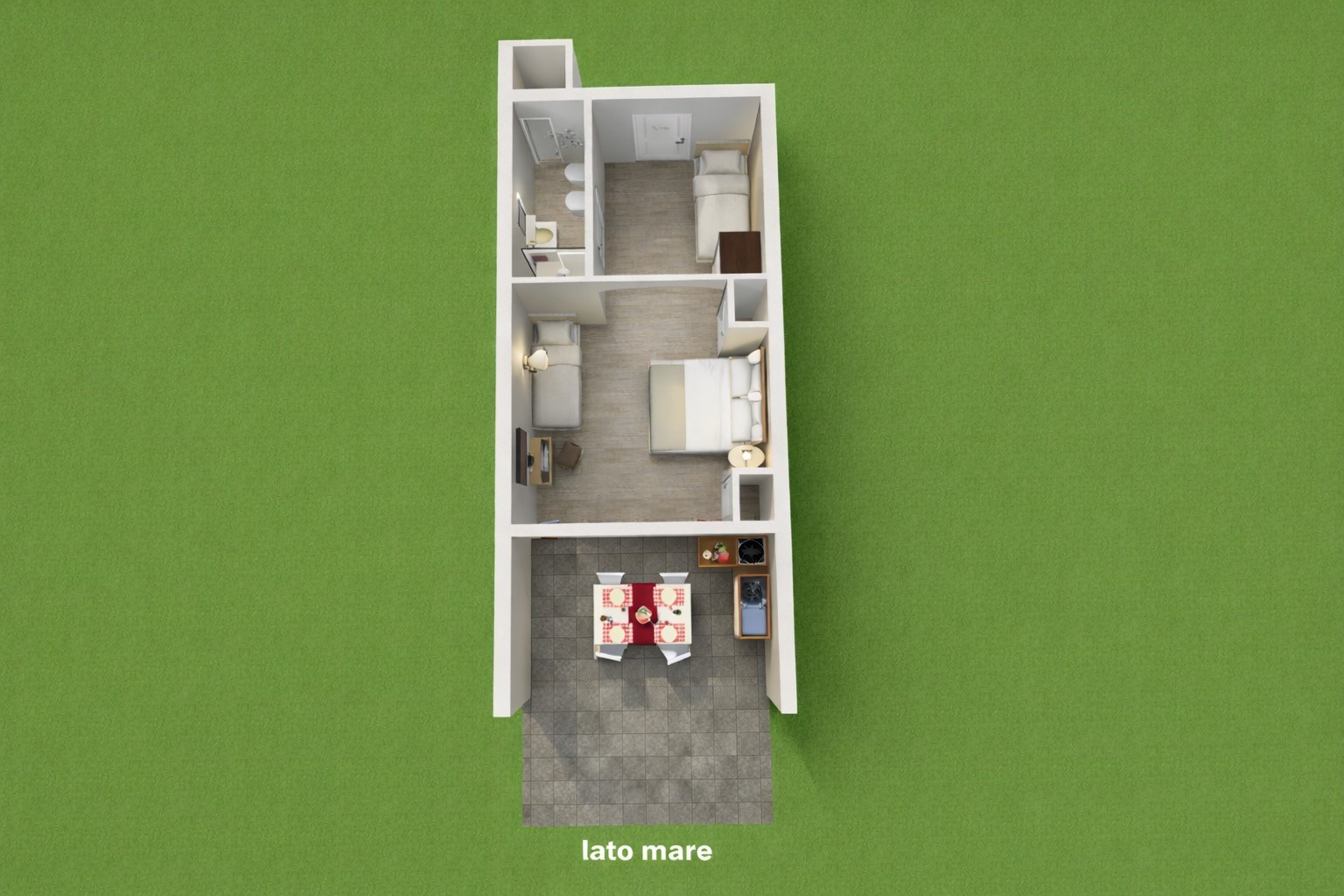 Novità 2026: Camere quadruple da 25 mq. con terrazza vista mare, attrezzati per mangiare anche all’aperto, con climatizzatore, televisore e telefono e terrazza.