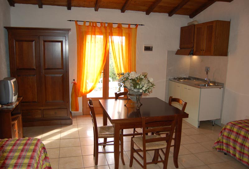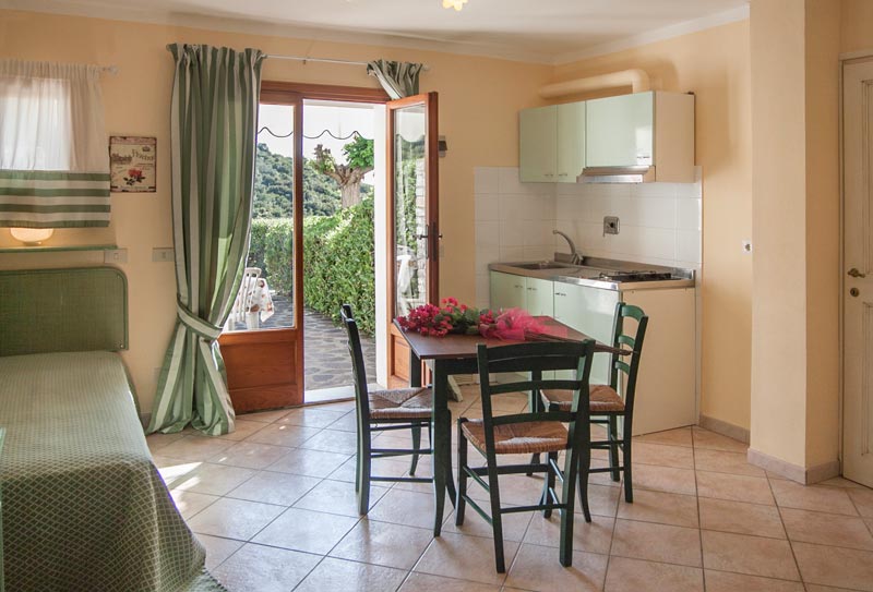 - soggiorno con angolo cottura e letto matrimoniale più letto aggiunto